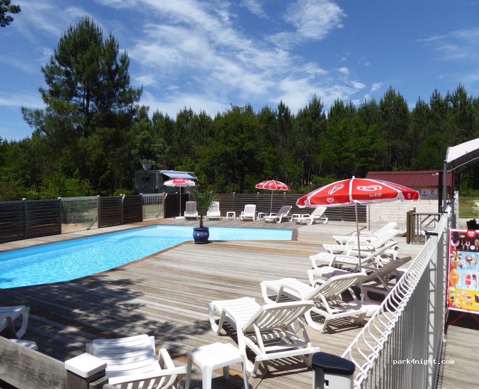 Located in a wooded area - on the wine route in the Landes regional park - swimming pool - free wifi at the entrance - supermarket in front of the camp - near the center